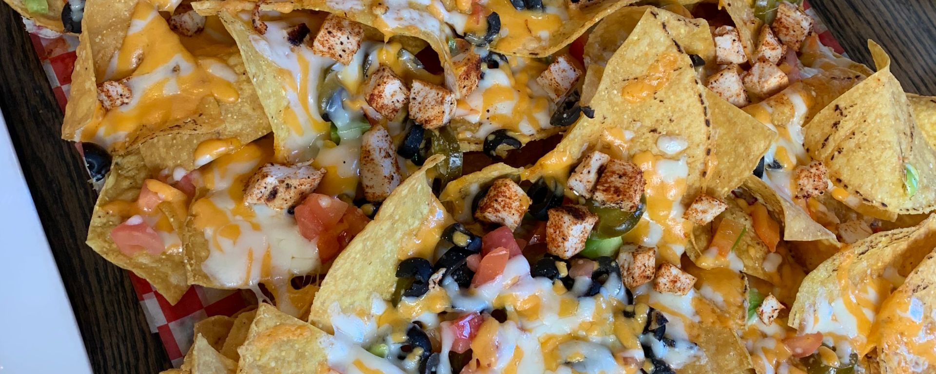 The toppings were classic. I’m a sucker for black olives and there were a whole bunch on there. (If anyone ever asks if you want GREEN olives on nachos, you shake your head like THIS.) The amount of cheese wasn’t too little to be dry and it wasn’t too much to leave the chips soggy. The chips were light with crunch, the chicken was cubed to a perfect size, and the whole damn thing tasted great.