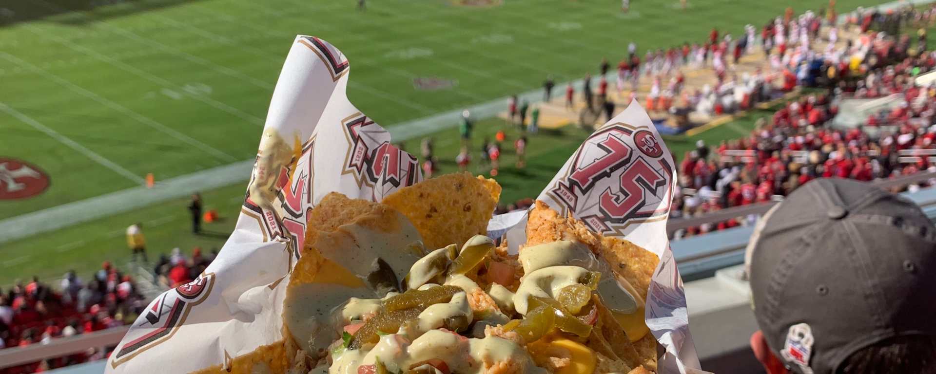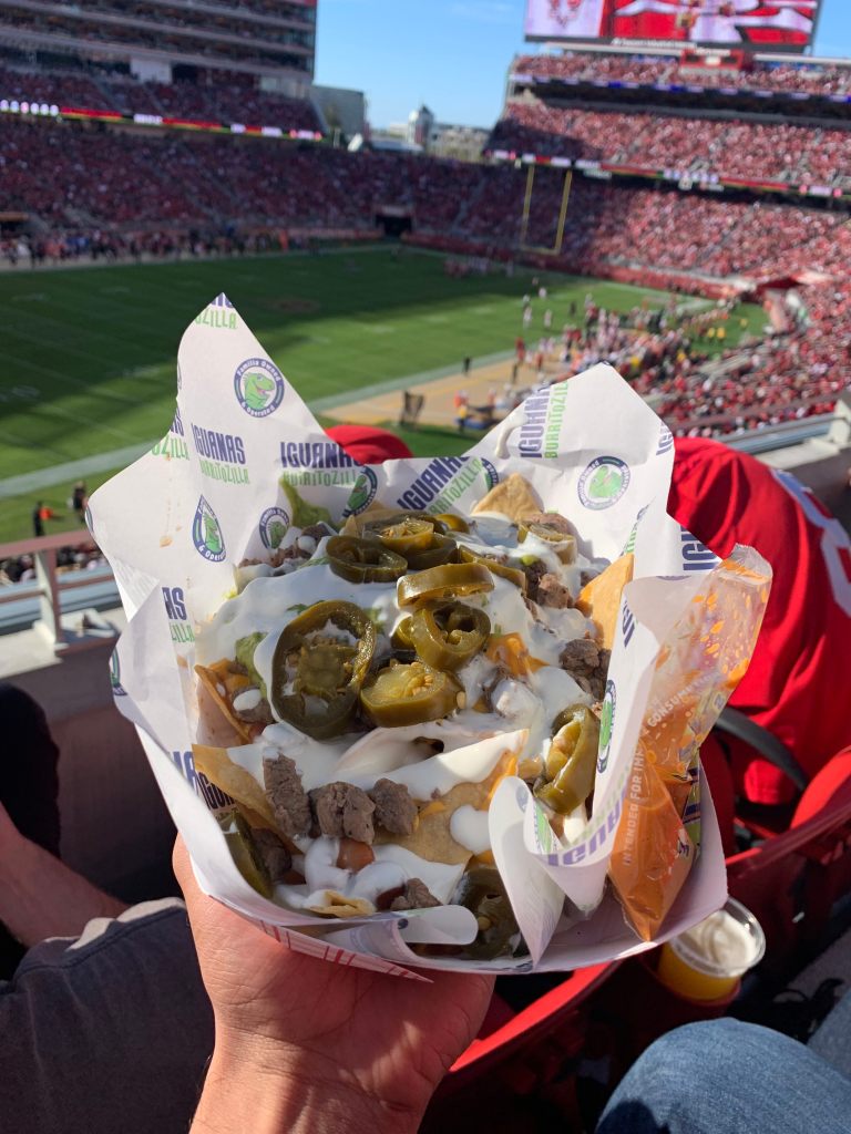 For unclear reasons, Levi’s Stadium is located in Santa Clara, a pretty short jump on the Caltrain. It was slightly disappointing not to get to watch a game in the legendary Candlestick Park but Levi’s Stadium is new, and new big shiny things require wide open spaces. As ‘The (Dixie) Chicks’ will tell you, wide open spaces give room for big mistakes, and this game proved them to be correct. But as for the stadium, it has a colossal footprint that dominates the skyline. As you enter the imposing structure, the violent calls of the home fans reverberate throughout the towering concrete halls to become a thundering din. As loud as this was, nothing compared to the increasingly deafening rumbling of my stomach anticipating the nachos to come.